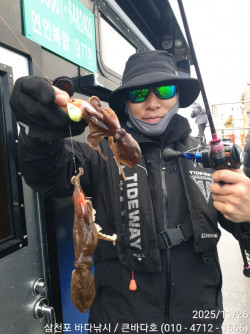 쭈꾸미출조 다녀왔습니다3키로급 돌문어를 시작으로 왕쭈꾸미가 따박따박 올라옵니다날이 추워지니 마리수는 조금 떨어지지만 그래도 씨알굿 금방금방 양이 채워집니다상위권조사님들 40수전후못잡으셔도 씨알이 좋아 반찬거리는 충분히 장만하시네요열심히 낚시해주신 조사님들 감사합니다쭈꾸미출조 함께하실 조사님들은 언제든지 예약주십시요예약문의 : 010 - 2314 - 0247오시는길 : 경남 사천시 팔포3길 56-35홈페이지 :https://badafishing.sunsang24.com/